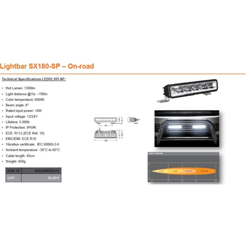 Kaugtuli, Osram LED LIGHTBAR SX180-SP, 14W, Ref.10, 182mm.