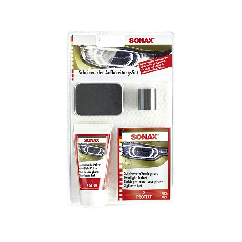 Kahe-etapiline lihtne ja kiire töötlemine paneb pleekinud ja matistunud pinnad särama. Eemaldab väiksed kriimud ja kaitseb uuesti matistumise eest. Töötlemine taastab tuleklaaside algse läbipaistvuse. Lisaks ilusamale läikivale välimusele paraneb nähtavus ja liiklemine muutub turvalisemaks. Pakendist jätkub kaks korda kahe tule töötlemiseks.