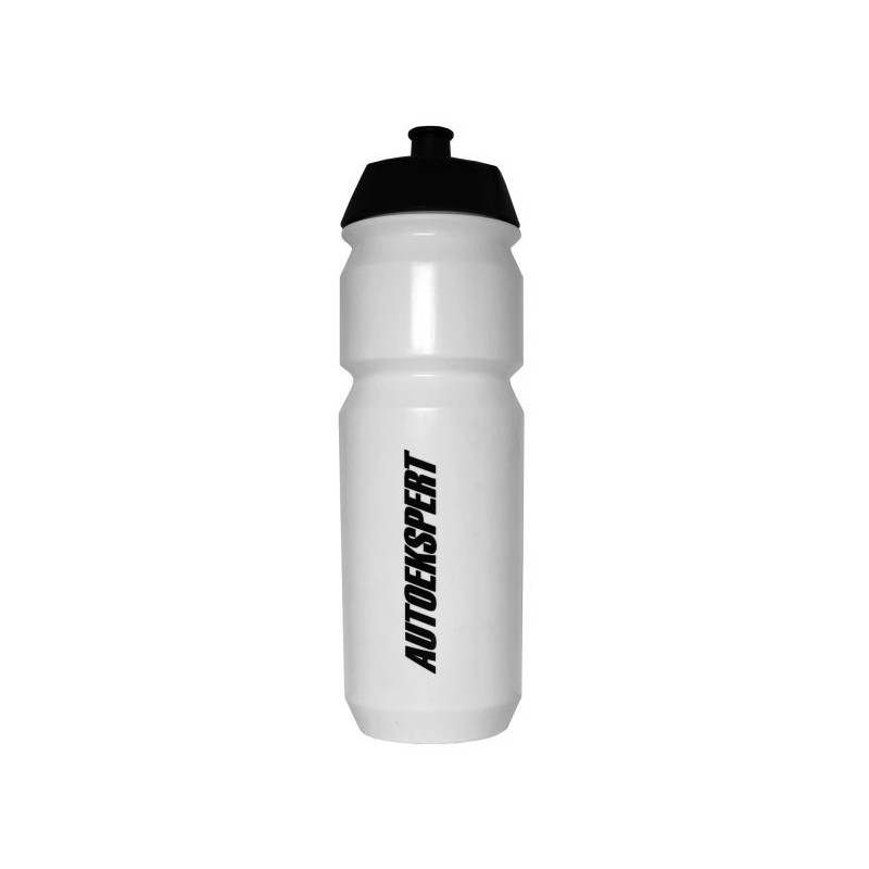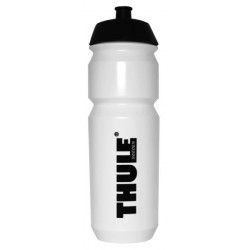 Valge joogipudel, mustade Thule ja Autoekspert logodega.