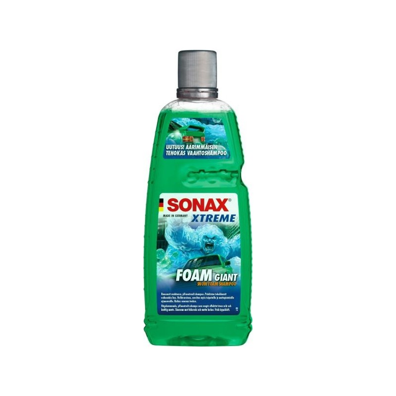 SONAX XTREME FoamGiant Šampoon loob paksu ja kauapüsiva vahukihi, mis katab sõiduki nagu lumekiht ning lahustab mustuse tõhusalt ja õrnalt. Tänu pH-neutraalsele koostisele on see turvaline kõikidele pindadele, sealhulgas kiletatud ja mattviimistlusega autodele.